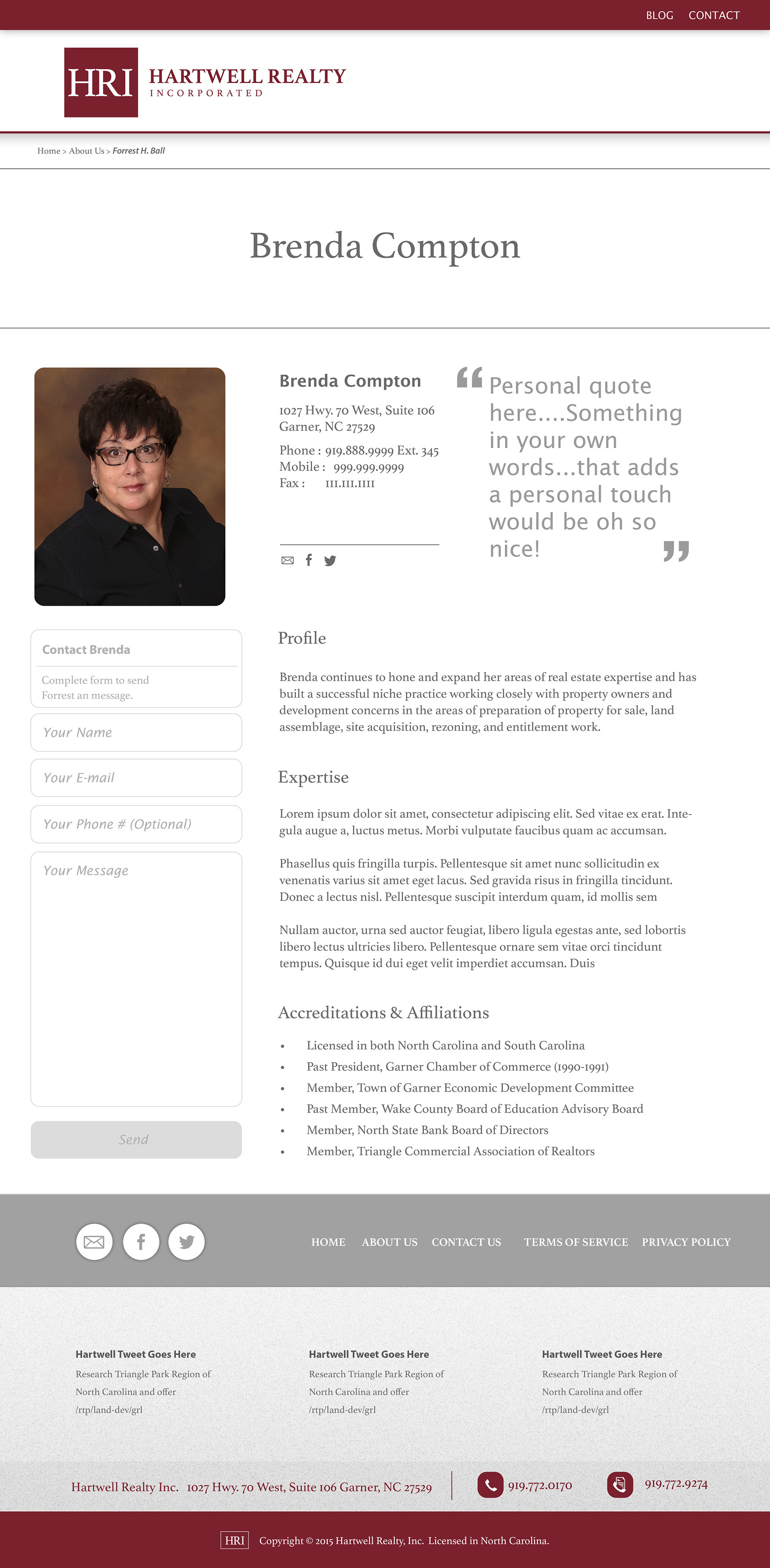 Three unique wireframes were created. I collaborated with the Hartwell team to arrive at the final design below.
