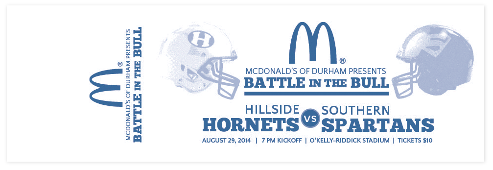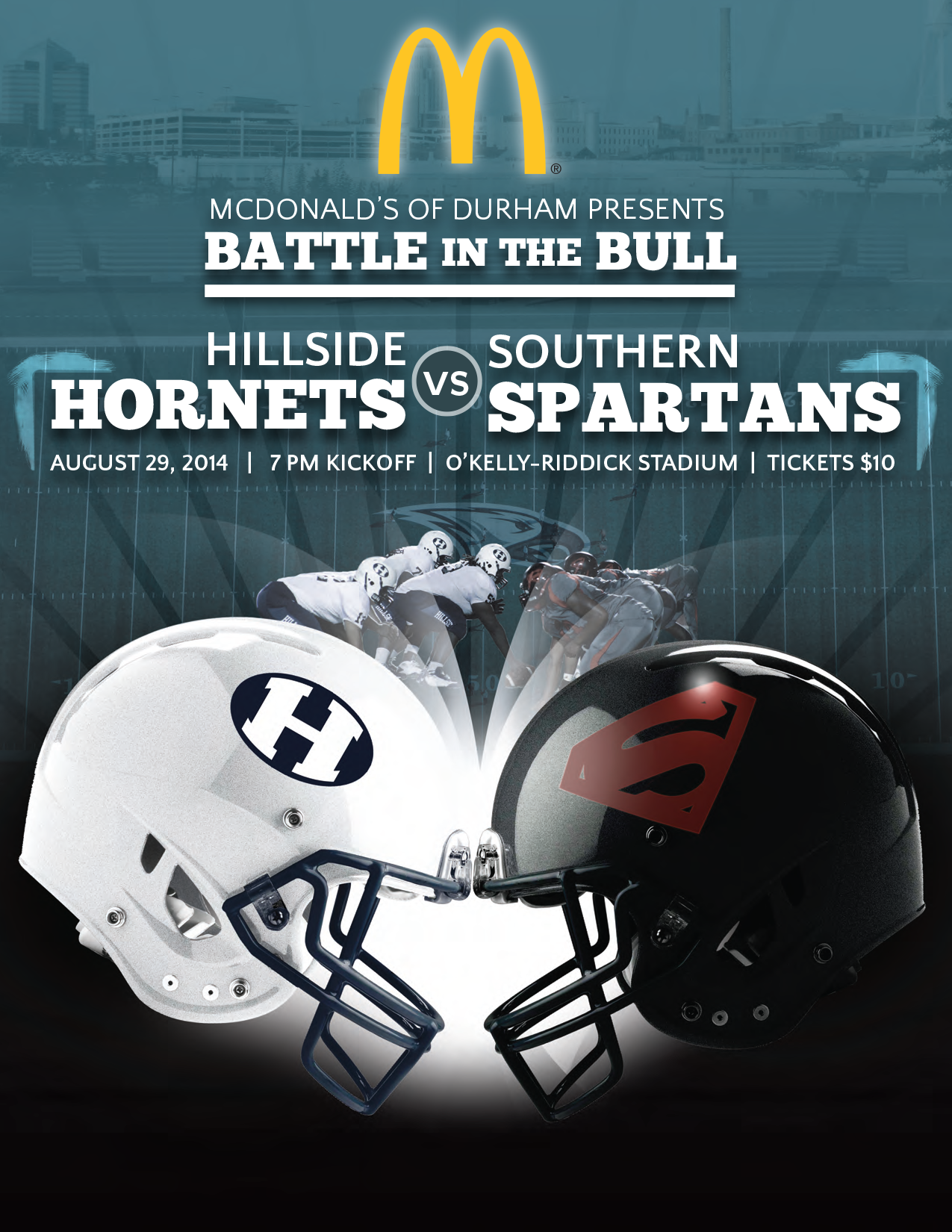 Hillside High School commissioned a banner for their technical school as well as a promotional material for their football team centering on a game with a rival school.