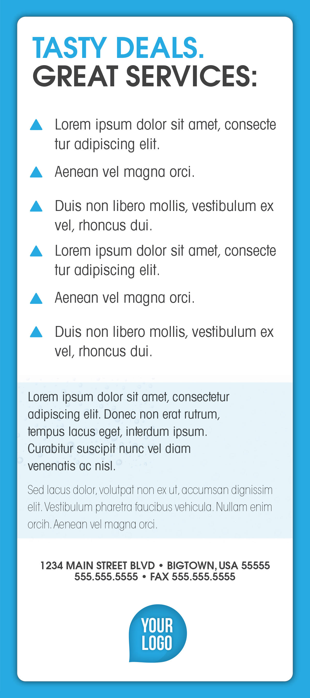 A promotional marketing company wanted a rack card for their POS counter. This was designed to be a campaign piece where different aspects of the business could highlight each service they provide in more detail. (unused proposal)
